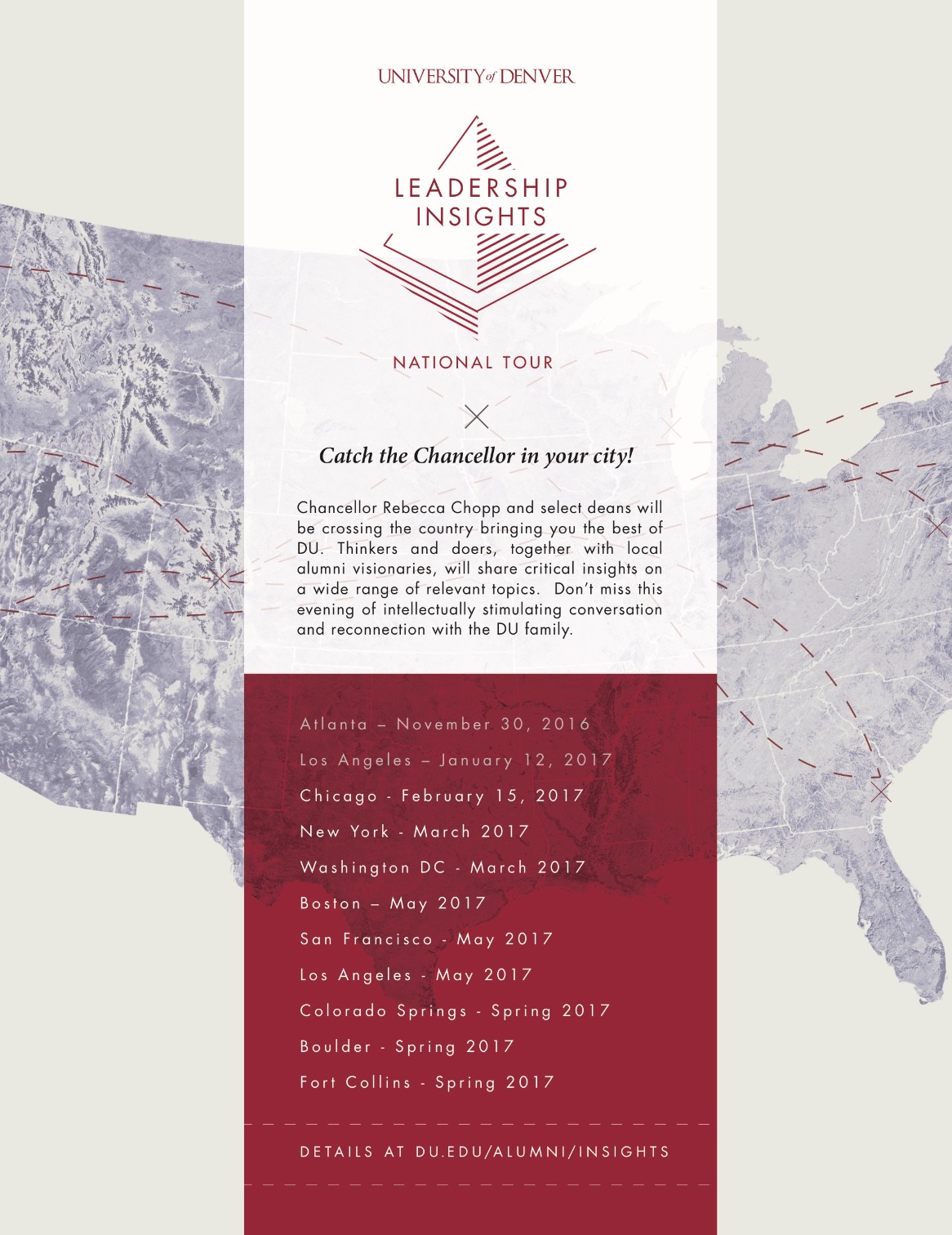 Logo and print design for a national speaking tour by the Chancellor of the University of Denver.