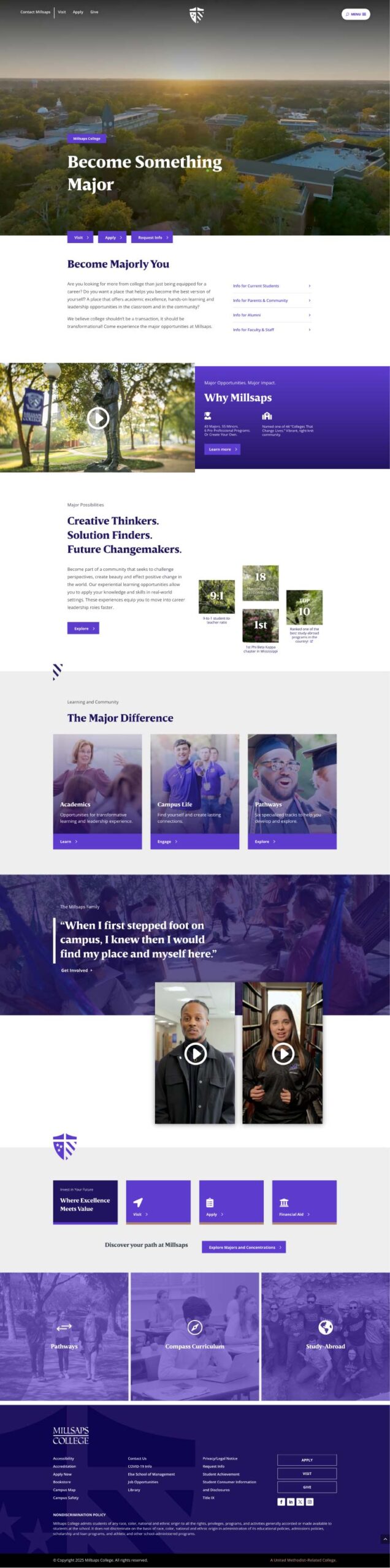 Lots of pages, lots of legacy design and development that HAD. TO. GO! Replete with opportunity for creative problem-solving, this complete overhaul and rebuild was an exciting challenge. I’m really proud of what our team pulled off against the challenges that come with a University overhaul (if you know, you know). I was responsible for creative direction, design, UX/UI, wireframing, and leading our team of developers through the design and build process. Check it out at Millsaps.edu